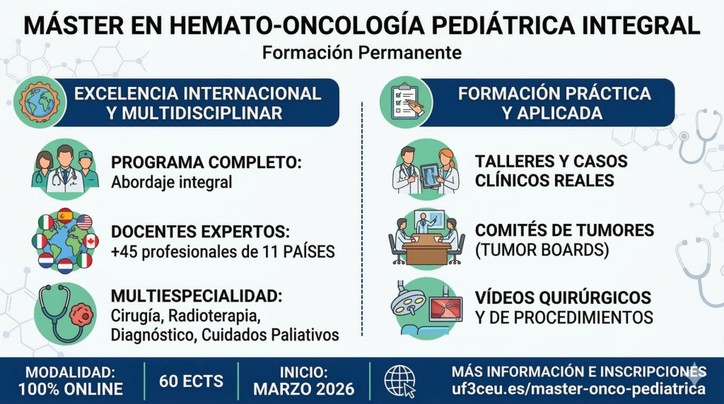 🔗 Más información e inscripciones en: https://uf3ceu.es/estudios/titulos-propios/master-hemato-oncologia-pediatrica-integral/